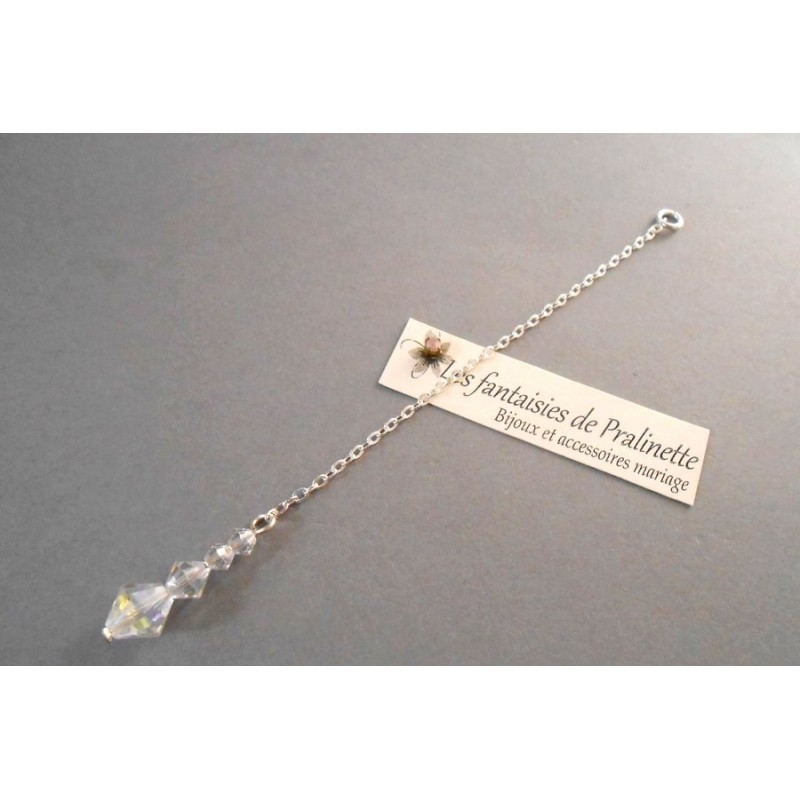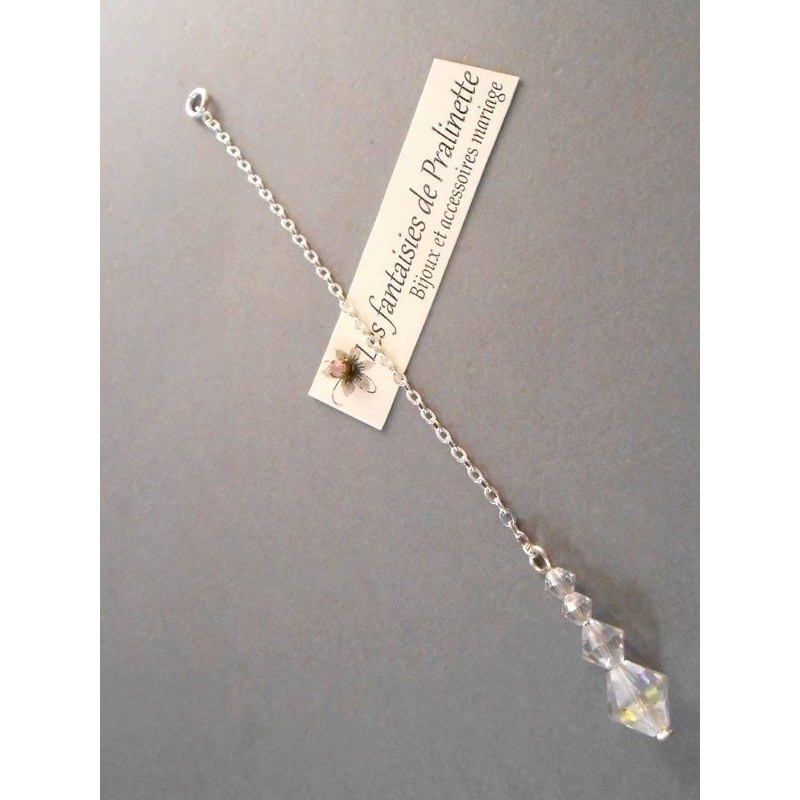 Présenté en transparent et argenté. Bijou mariage de dos d'environ 12 cm. Modification longueur sur demande.