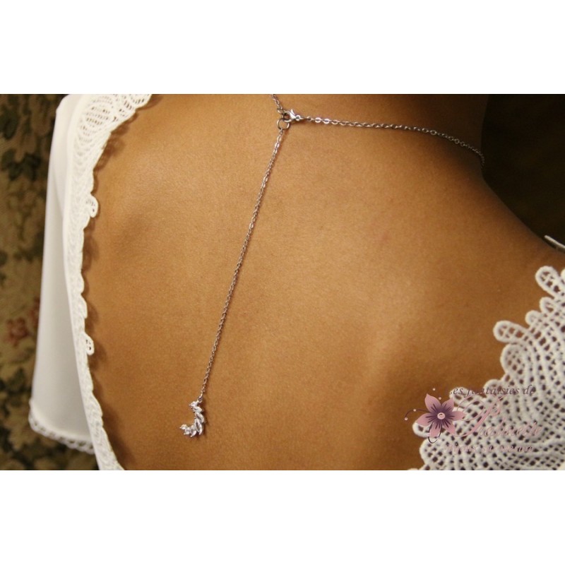 Pendentif 20x6 mm. Longueur totale 15 cm. Présenté argenté rhodié.Pendentif de dos mariage amovible à fixer sur un collier de mariage, voir Colliers de mariage