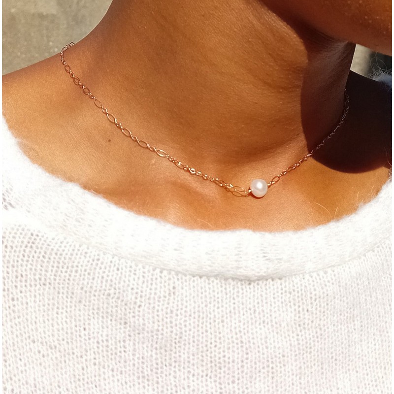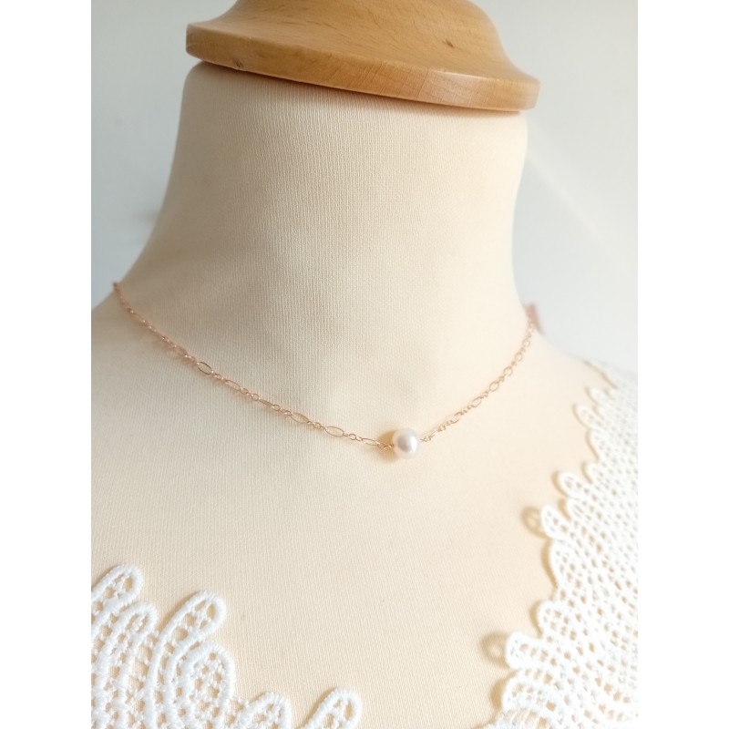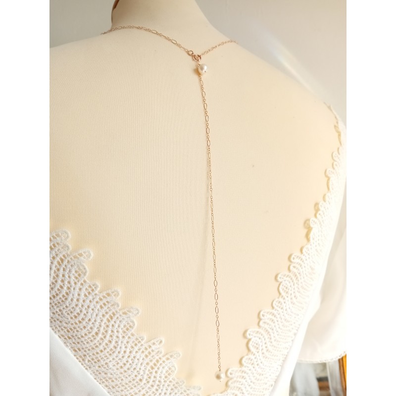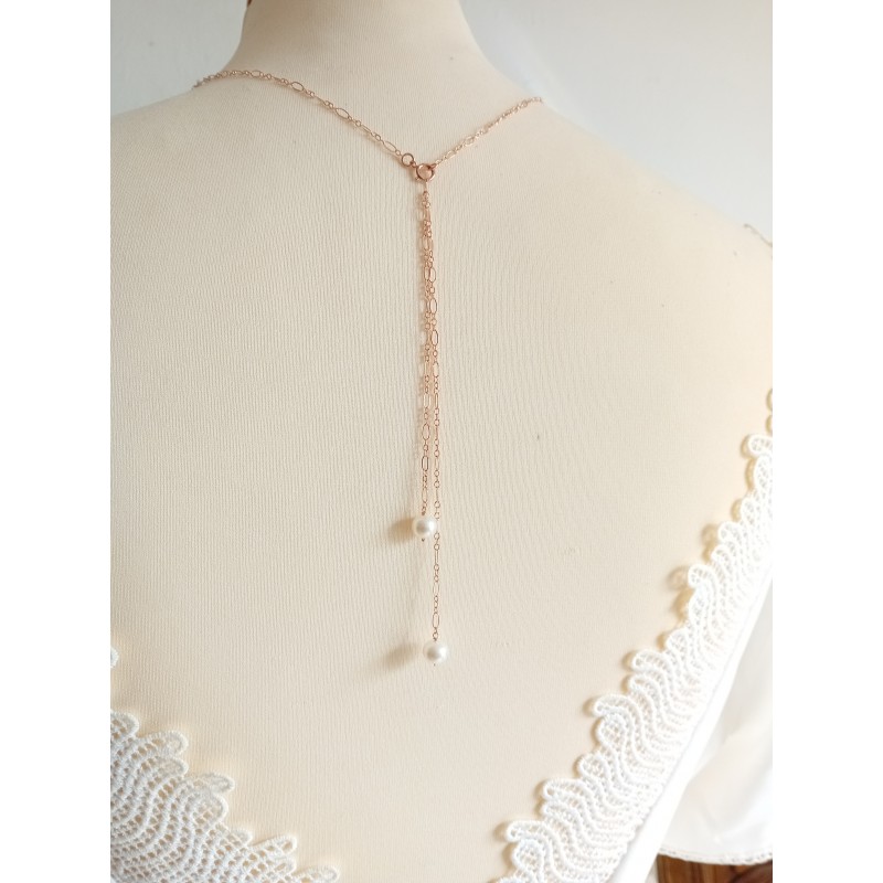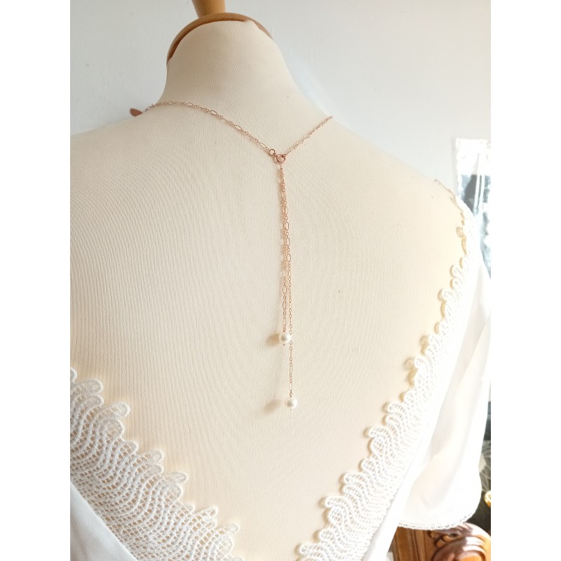 Collier de dos mariage minimaliste perles de culture.