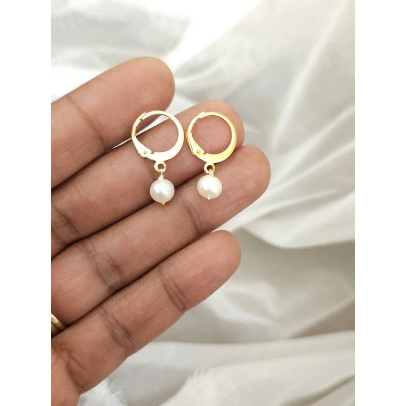 Boucles d'oreilles mariage une perle solitaire.